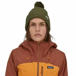 Patagonia Powder Town Beanie Line Logo Ridge Patch: Wyoming Green