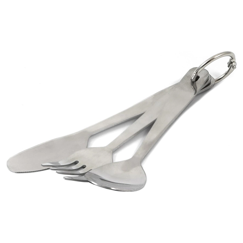 Cet ensemble de couverts est fabriqué en acier inoxydable de haute qualité. L’ensemble couteau, fourchette et cuillère comprend un anneau détachable pratique pour se fixer facilement sur votre sac.
