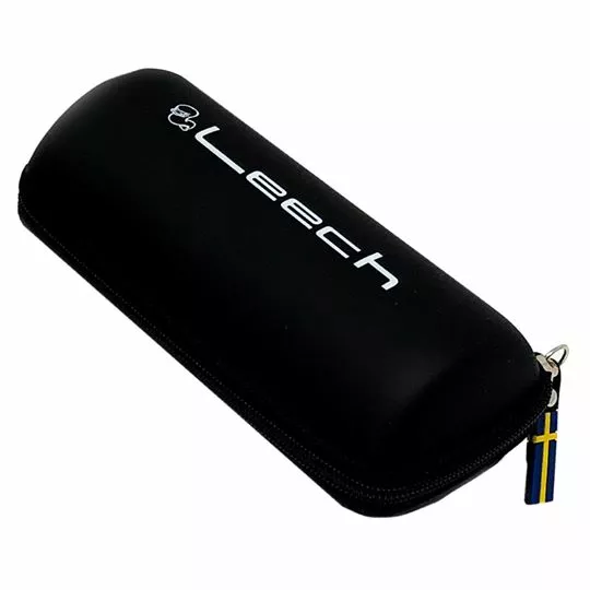 Étui rigide avec drapeau suédois comme détail de fermeture éclair.