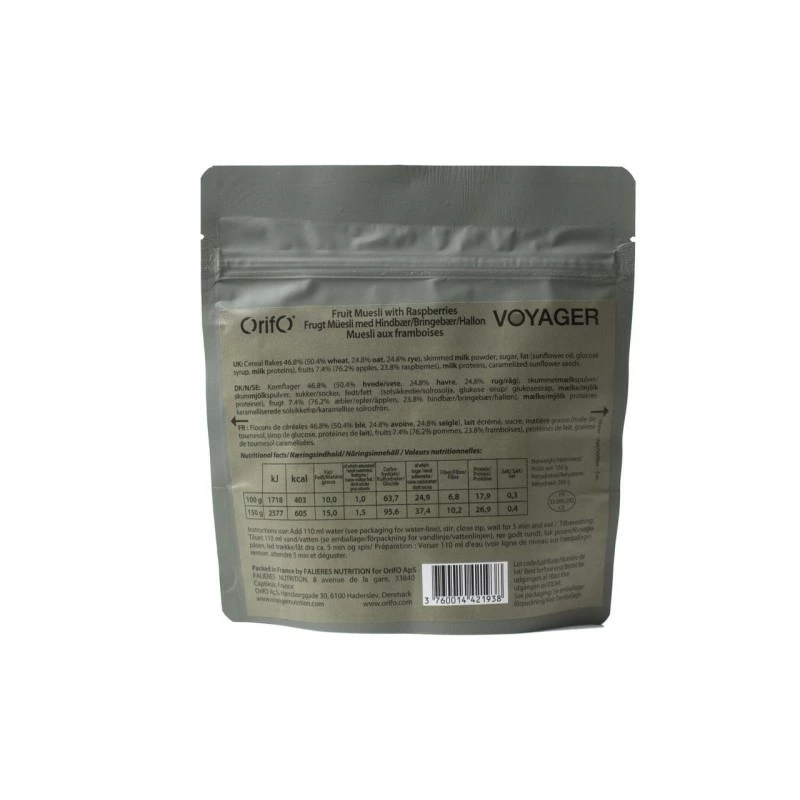 Ingrédients : Flocons de céréales 46,82 % (50,4 % blé, 24,8 % avoine, 24,8 % seigle), lait écrémé en poudre 17,85 %, sucre, matière grasse végétale (huile de tournesol, sirop de glucose, protéines de lait ), fruits 7,4% (76,2 pommes, 23,8% framboises), protéines de lait, graines de tournesol caramélisées.Allergènes : Gluten, Lait Nutrition pour 100g : • Énergie: 1718 kcal/403 kj • Gros: 10g • Glucides : 63,8g • Fibre: 6,8g • Protéine: 179g • Le sel: 0,3gNon ouvert : 48 mois à maximum +20 degrés.